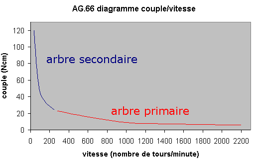 sur l'arbre primaire de 280 a 2200 tours/minute